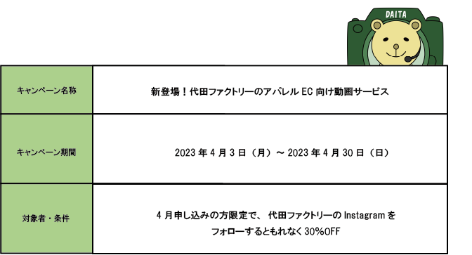 アパレル向け動画サービスを2023年4月3日(月)より開始いたします。