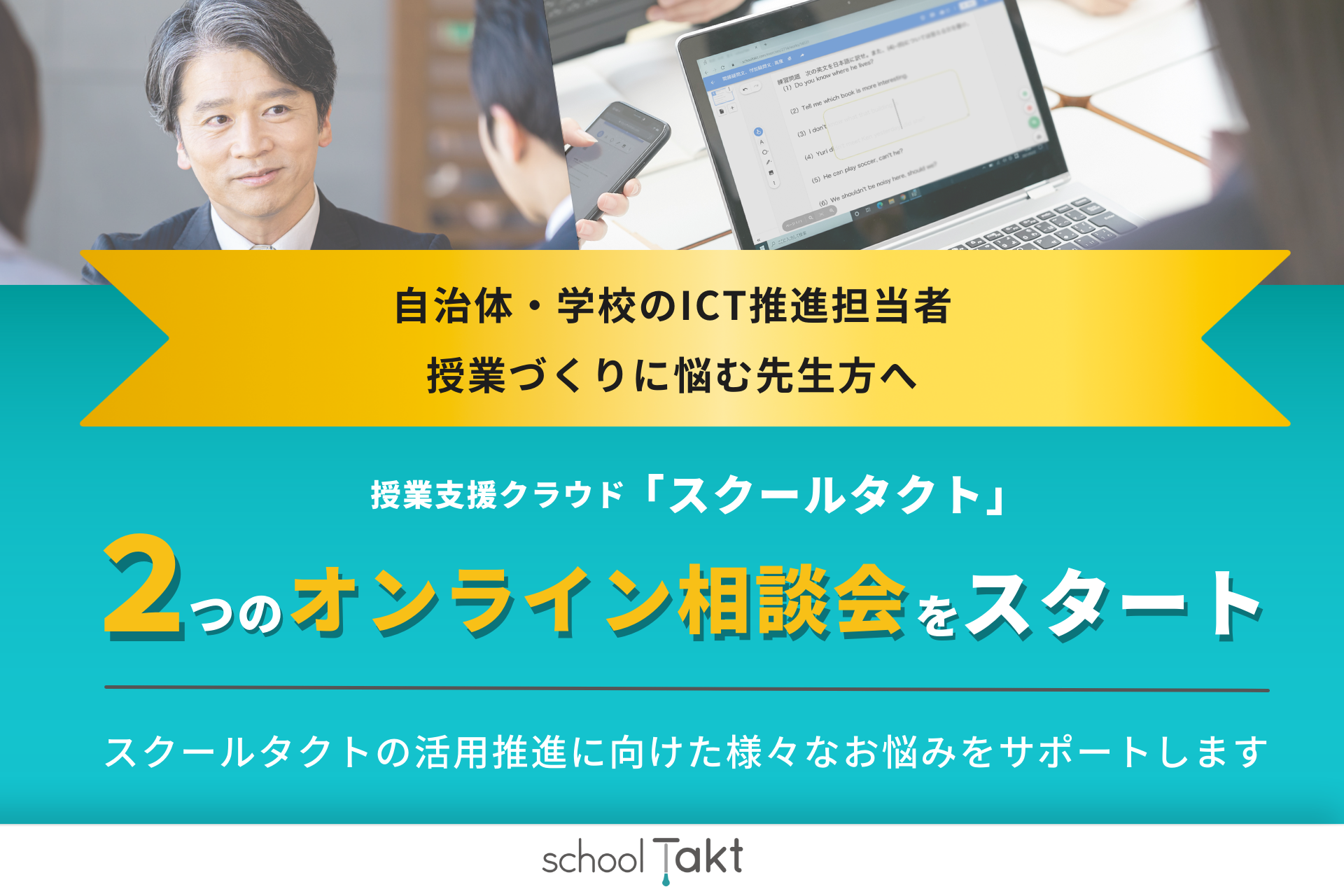 スクールタクトは、これまで2,000を超える小・中・高校などに導入いただき、多くの先生や自治体・学校と対話を重ねてきました。自治体や学校ごとにICTの導入が行われ活用が進む中、実践における個別のサポートを目的に2つのオンライン相談会を始めることにしました。