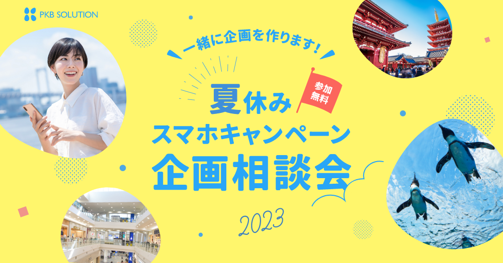 「夏休みスマホキャンペーン企画相談会」は、オンラインで参加できるWEB相談会です。コロナ禍以降、本格的にお出かけ需要が戻ると予想される今年の夏休みに向けて、豊富なノウハウを持ったスタッフが企画立案のお手伝いをいたします。