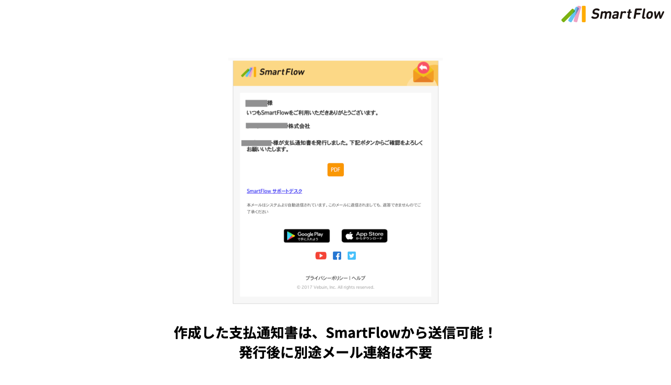 発行した支払通知書は、SmartFlowから取引先担当者へ通知が可能です。