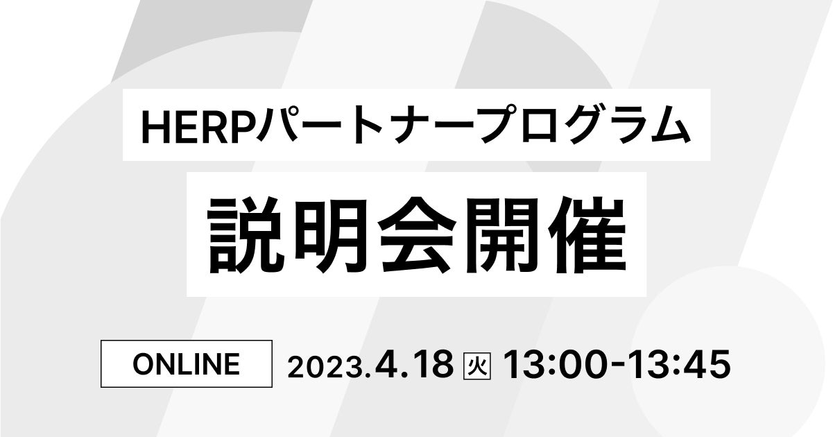 正式開始に伴い、HERPパートナープログラムの説明会(オンライン)を開催いたします。