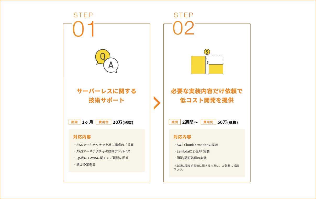 ・実装では無く、サーバーレスの開発について技術支援をして欲しい