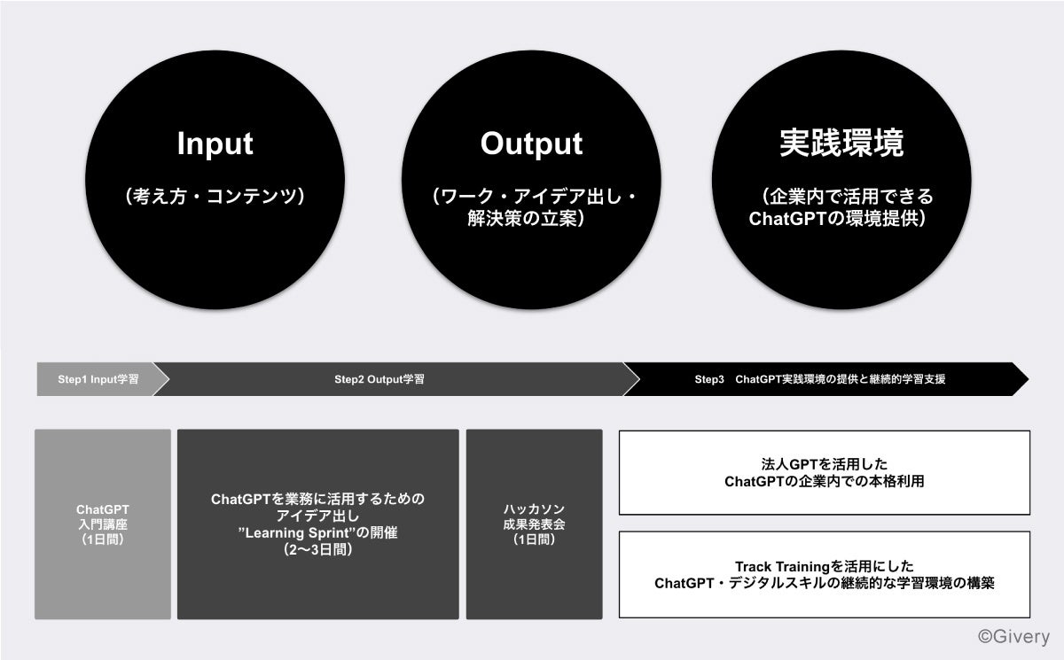これらのChatGPTを中心としたGenerative AIを活用する技術を学ぶインプット型のオンライン教材だけではなく、アウトプット型の人材育成プログラムを同時にリリースいたしました。