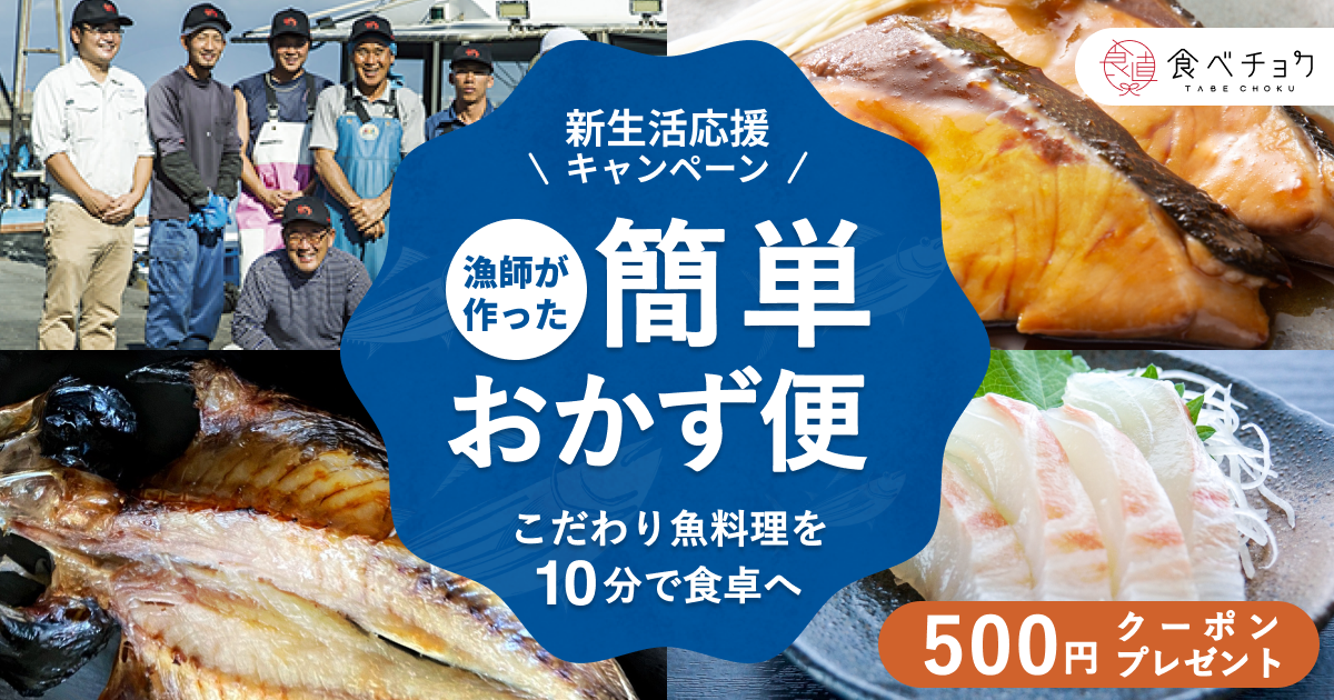 「美味しくて栄養バランスもよい食事を食べたいけれど、健康的な食事を毎日自分で用意することが難しい」。そんな方の食卓をサポートしたいと思い「手軽な魚おかずを食卓へ」をコンセプトに約10分の簡単調理で魚おかずが届く「食べチョク簡単おかず便」の新生活応援キャンペーンを実施します。