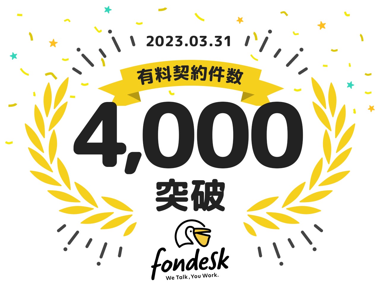 そしてこの度、2023年3月末時点で、「fondesk」の有料契約件数が4,000件を突破いたしました。従来からニーズの高かったIT業・士業などの導入増加に加えて、建設・不動産や、小売・卸売・EC、人材・教育など、非IT業界にも電話取次代行のニーズが拡大して、有料契約件数増加の後押しとなりました。