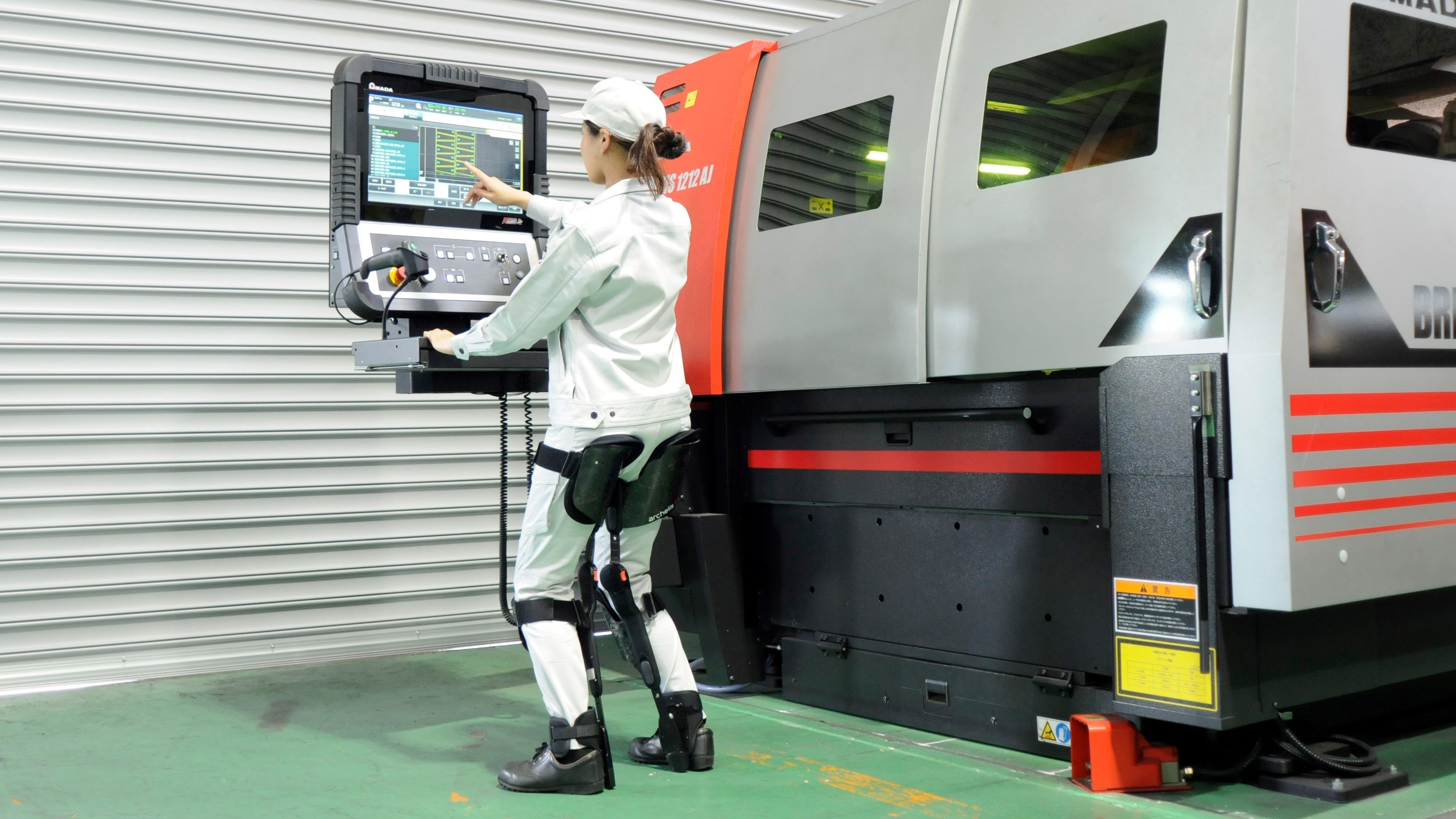 足に装着し、装着者の体重をスネとモモで支えることで、長時間の立ち仕事を楽にします。3つの特長として、「装着したまま移動ができる」「電源不要」「さまざまな体型でも簡単な調整で装着が可能」があり、また、従来の製品よりも軽量化をし、2022年8月の販売開始以来、長時間の立ち作業(溶接、検査、組立、外科医、など)を行う日本国内の製造現場及び病院施設に導入が進んでいます。