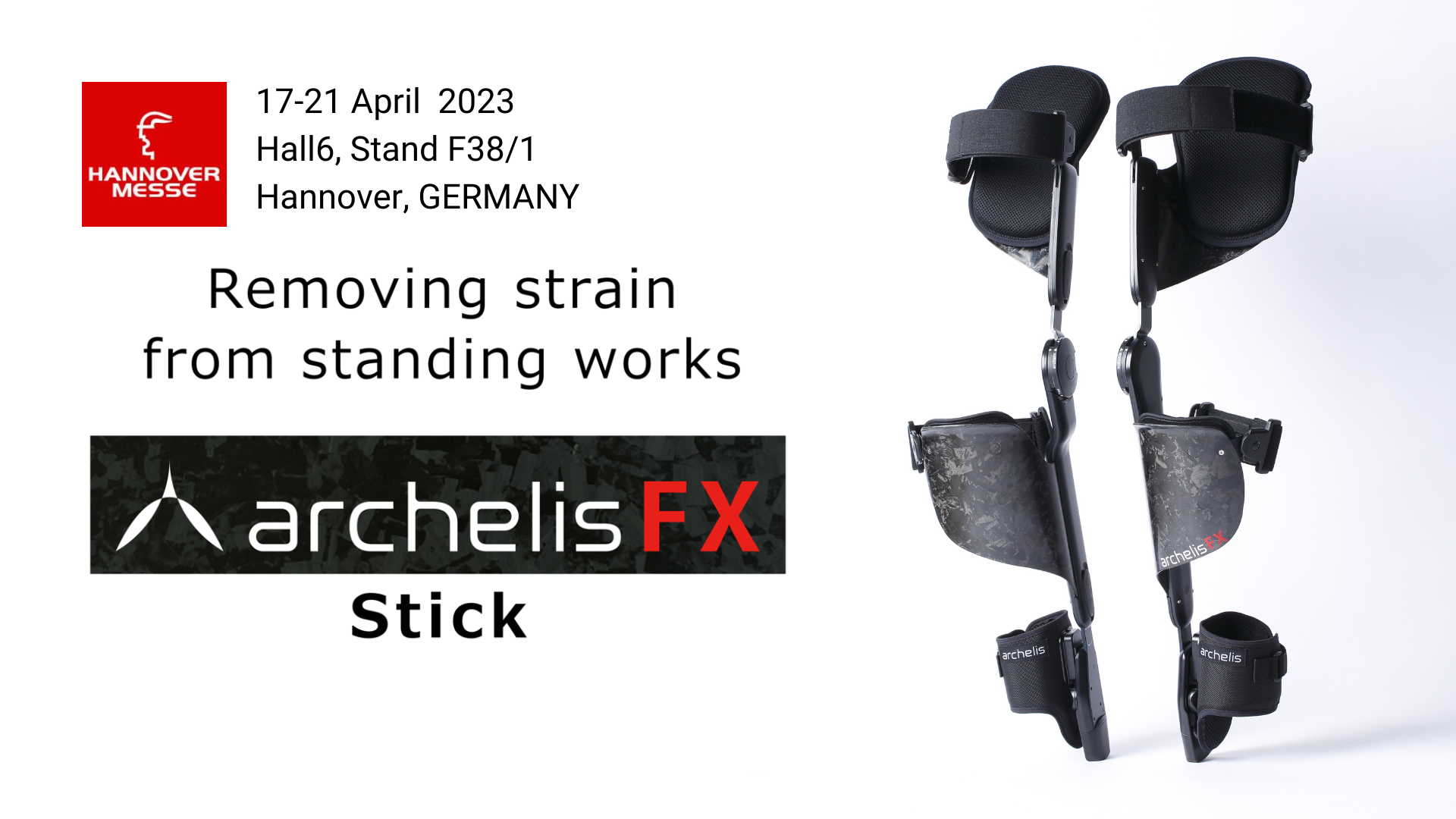 「アルケリスFXスティックタイプ」は、長時間の立ち仕事での足腰の負担を軽減するアシストスーツです。