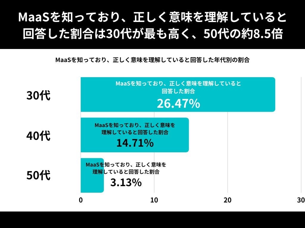 【MaaSを知っており、正しく意味を理解していると回答した割合は30代が最も高く、50代の約8.5倍】