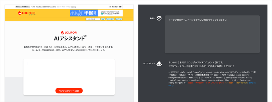 ■「ロリポップ!レンタルサーバー byGMOペパボ」:『ロリポップ!AIアシスタント(β)』