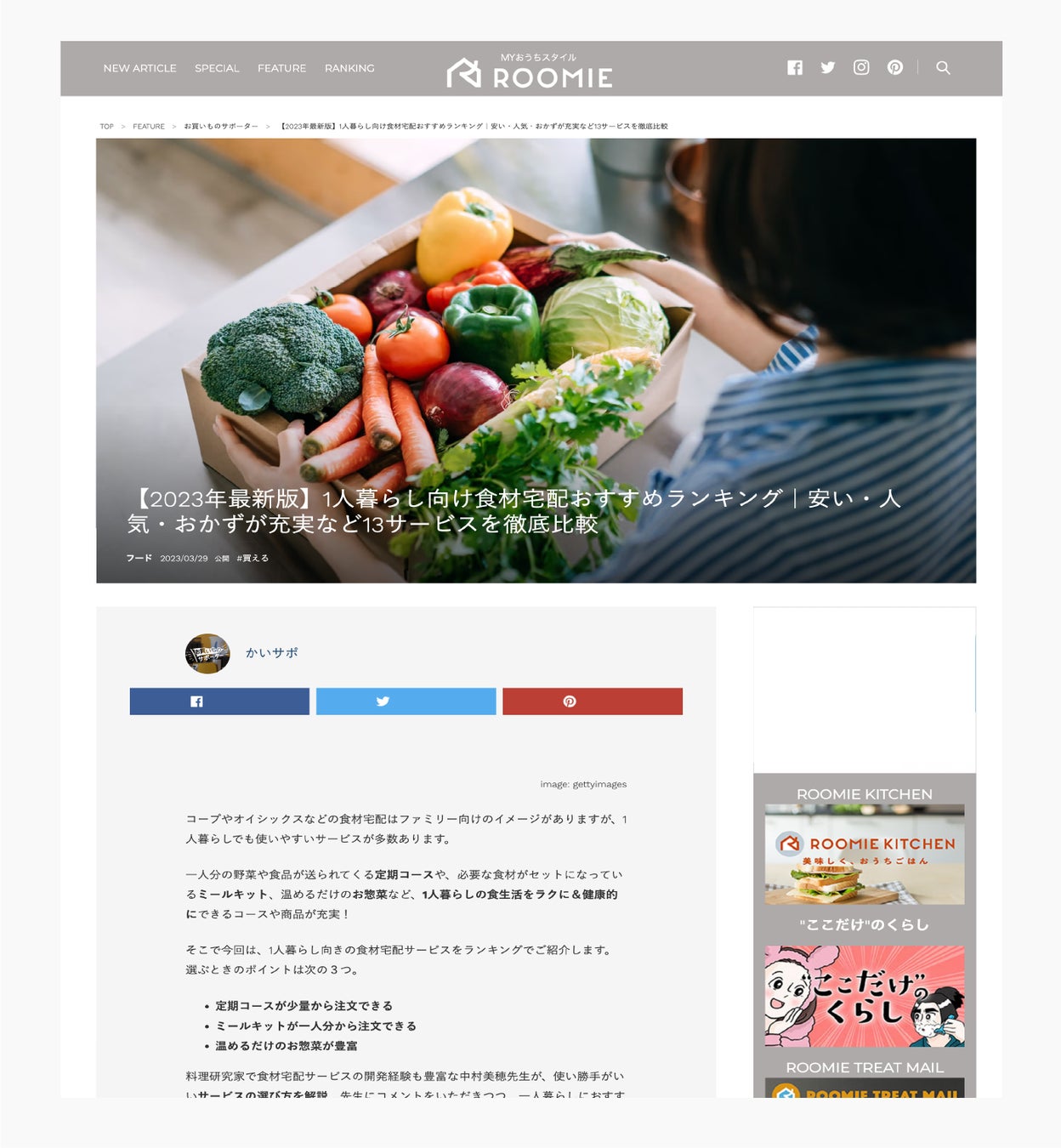 第一弾として『一人暮らし向けの宅食サービスランキング(https://www.roomie.jp/2023/04/980673/)』を2023年4月5日(水)に発表しました。