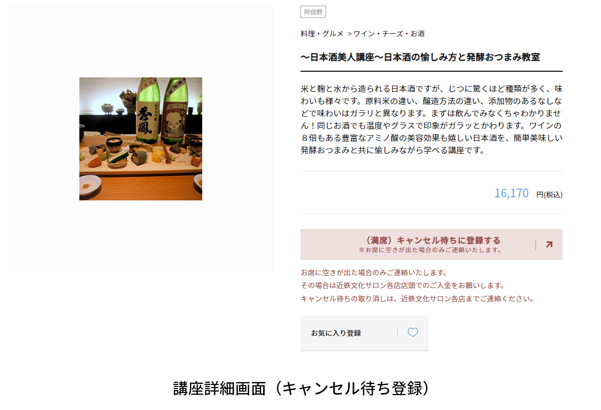 また、講座の座席がすでに埋まってしまっていても、『キャンセル待ち』で申込める機能を搭載し、キャンセルによる講座の空席防止を行うとともに、より多くのお客様に講座への参加機会をご提供できる取り組みを行われています。