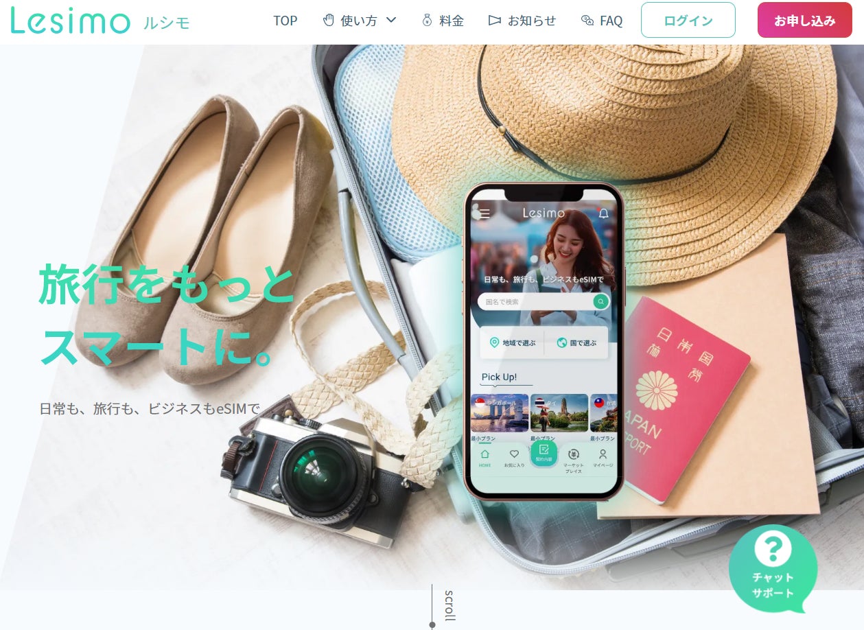 『Lesimo(ルシモ)』は、現在多くのスマートフォンが標準対応している「eSIM」向けの海外通信サービスです。物理的なSIMカードを抜き差しすることなく、web上で申し込みを行うだけで、普段お使いのスマートフォンが海外でインターネットに接続可能になります。