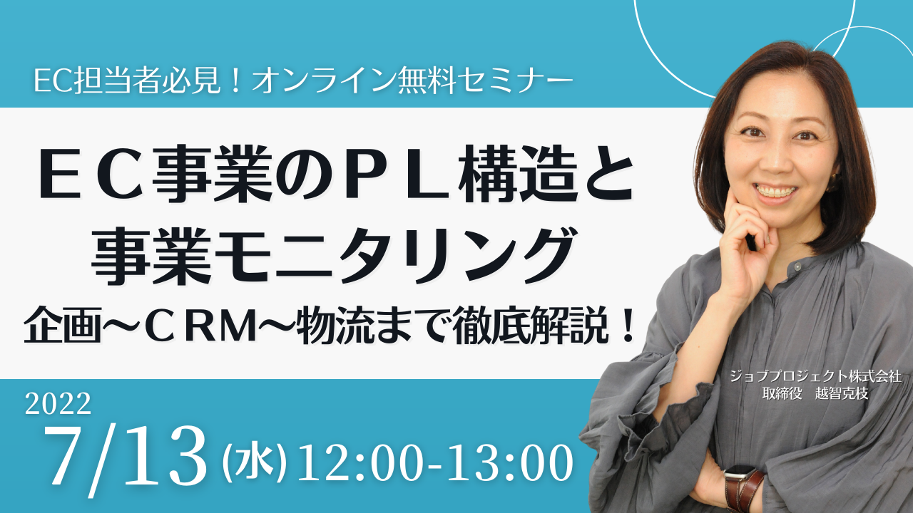 ShopifyをはじめとしたECの構築からコンサルまで行い、数多くのECサイトの立ち上げを手掛け構築し実績を上げている、ジョブプロジェクト株式会社取締役CBO越智克枝によるケーススタディたっぷりのセミナーとなっております。ECでの売り上げをさらに上げたい方やECサイトのリニューアルをご検討中の方は必見です。
