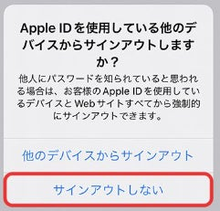 Step6:Apple IDを使用している他のデバイスからサインアウトしますか?とメッセージが表示されますが、サインアウトが必要なければ「サインアウトしない」をタップします。