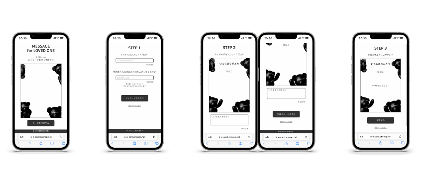 ユーザーはオリジナルデザインやフレームを自由に選択して作成することができ、完成したグリーティングカードはLINEとの連携やURLを直接シェアすることによって、相手にリアルタイムで贈ることができます。また、企業・ブランドのイメージを表現したカスタムデザインの実装が可能であるため、特別感のあるギフト体験を提供するとともに、ユーザーのロイヤリティを高める効果が期待できます。