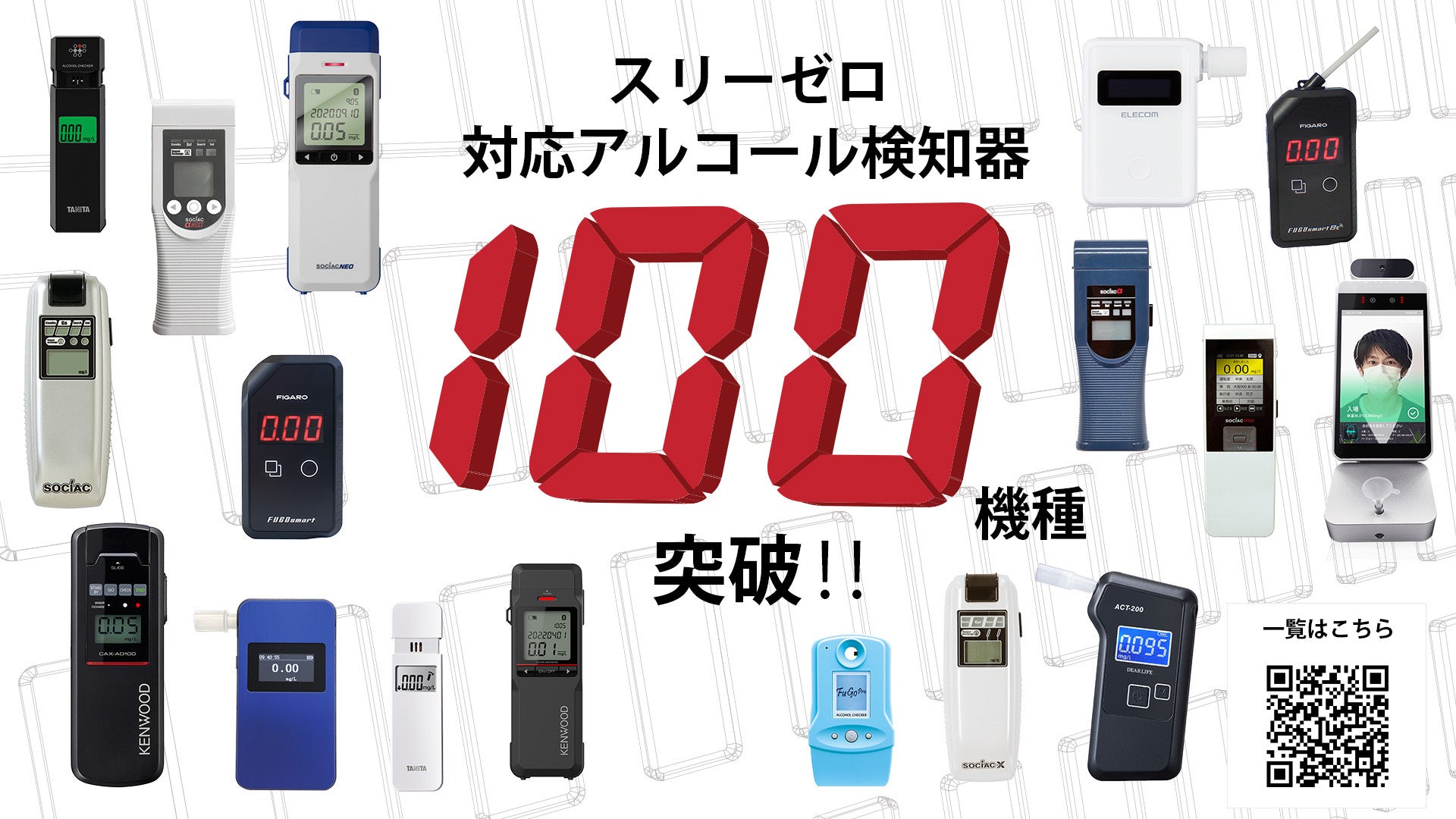 さまざまなアルコール検知器に対応できることで導入しやすく、好評をいただいておりますアルコールチェック管理サービス『スリーゼロ』が、サービス提供開始1年の時を経て、100機種を超えるアルコール検知器に対応いたしました。これからも、豊富な対応機種で、飲酒運転根絶に向けたアルコールチェック管理の運用を強力に支えてまいります。