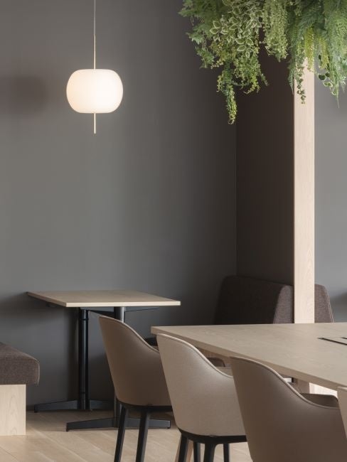 内装には可能な限りリサイクル素材を活用したサステナブルな資材を取り入れました。さらに、オフィス家具はサブスクリプションサービスを導入。働き方の変化にフレキシブルに対応しつつも、不要になった家具の廃棄を出さない体制を実現しました。
