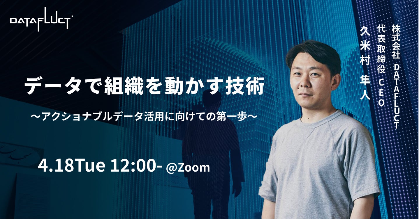 本セミナーでは、新規事業開発担当者・DXコンサルタントとして「大企業のデータ活用」の現場を熟知し、現在はDATAFLUCT代表としてさまざまな業界のDX支援を続ける久米村が登壇。データ分析の力で組織を動かすためのポイントを、具体的な事例とともに解説します。