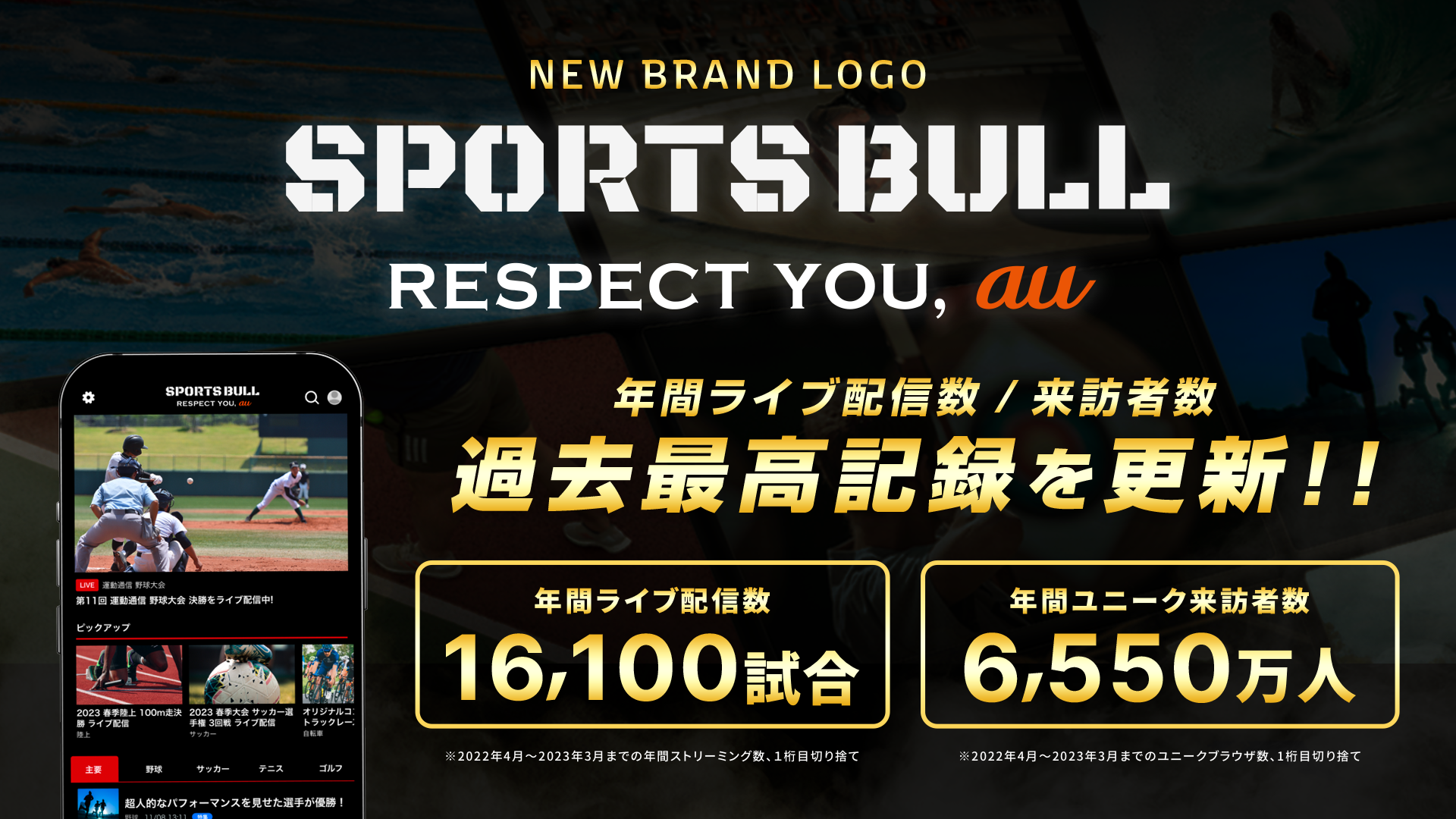「SPORTS BULL」は、2016年10月のサービス開始以来、パートナーであるKDDIとともに、 “日本のスポーツ界を盛り上げる”共通のビジョンのもと、学生/アマチュアスポーツの配信に注力してきました。サービス開始から7年目となった昨年度、「SPORTS BULL」は、過去最高の年間16,100試合以上のライブ配信を実現し、年間ユニーク来訪者数においても、過去最高の6,550万人(前年比155%)を突破しました。