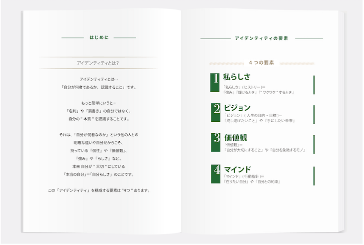 「人生の”取説”」とは、『名刺』や『肩書き』の自分ではなく、自分の”本質”=「私は、何者なのか?」を”言葉”にすることです。いわゆる 自分の「アイデンティティ」を言語化することです。