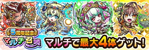 ・マルチ召喚で最大4体のコトダマンを獲得できる「5周年記念マルチ召喚」