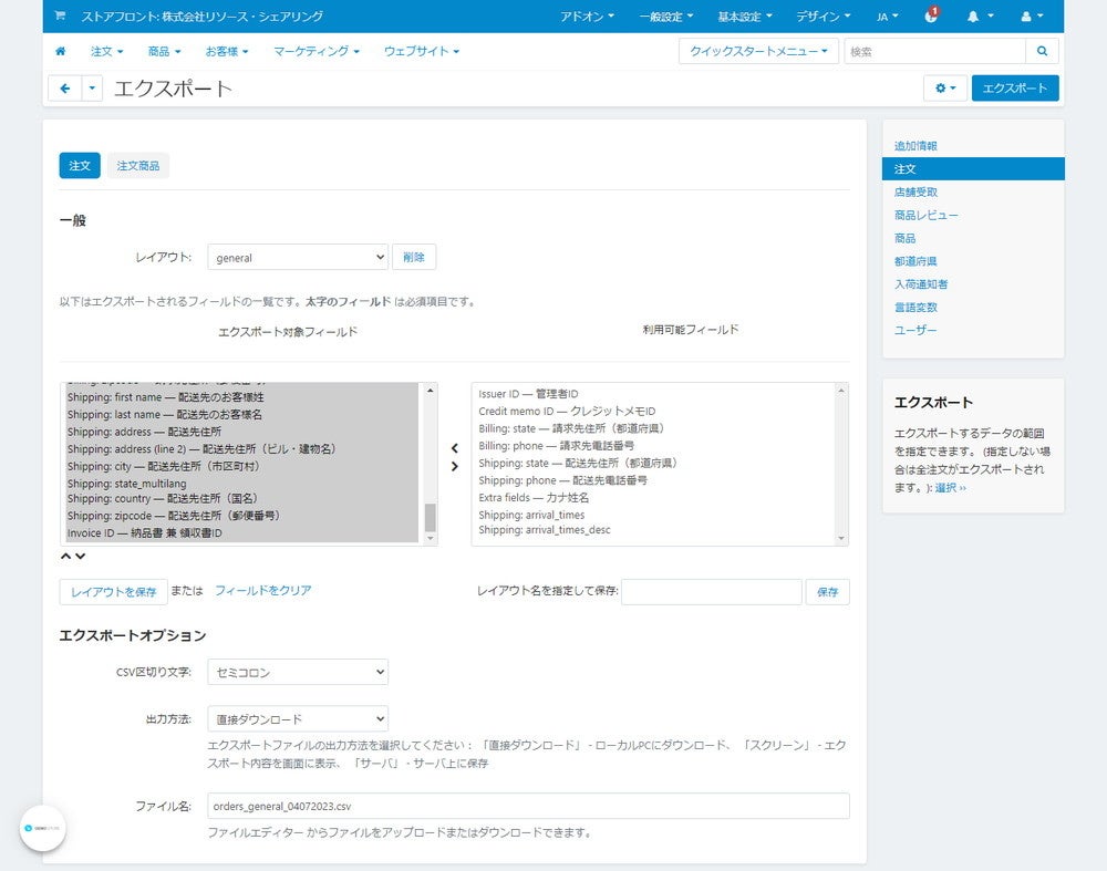 そこで、今回新たに請求先都道府県名として「Shipping: state_multilang」を、配送先都道府県名として「Shipping: state_multilang」を追加項目として注文エクスポートで吐き出せるようにすることで、「東京都」、「大阪府」といった日本語での都道府県名出力に対応いたしました。