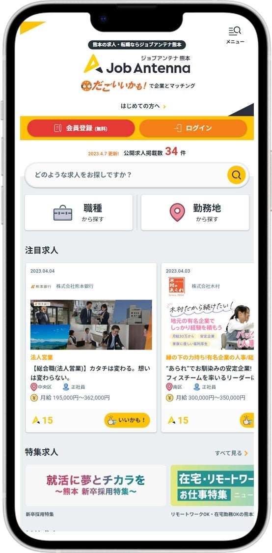- ジョブアンテナ熊本の画面イメージ ※画像は開発中のものです