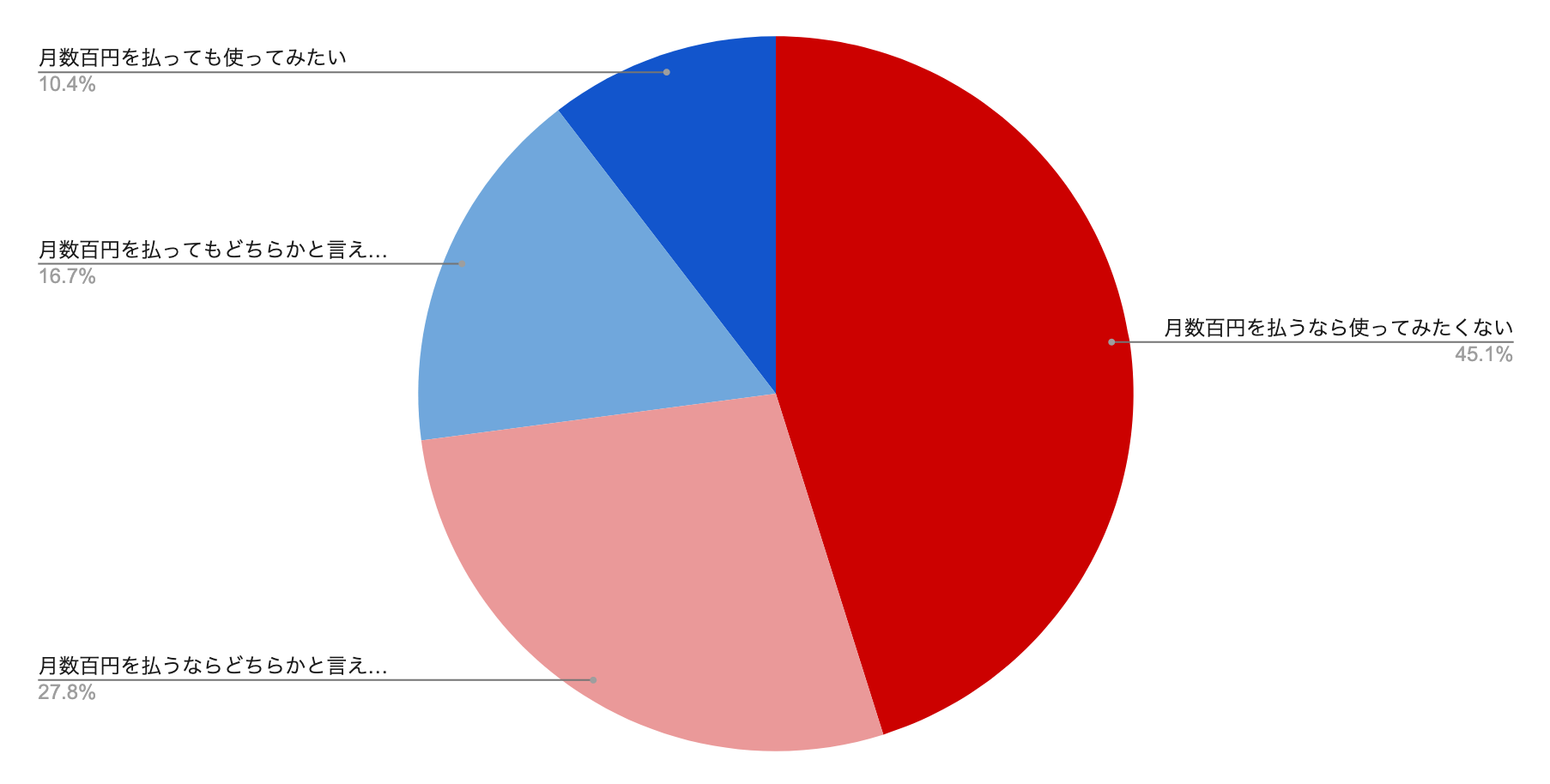 ・月数百円を払うなら使ってみたくない:約45.1%(65人が回答)