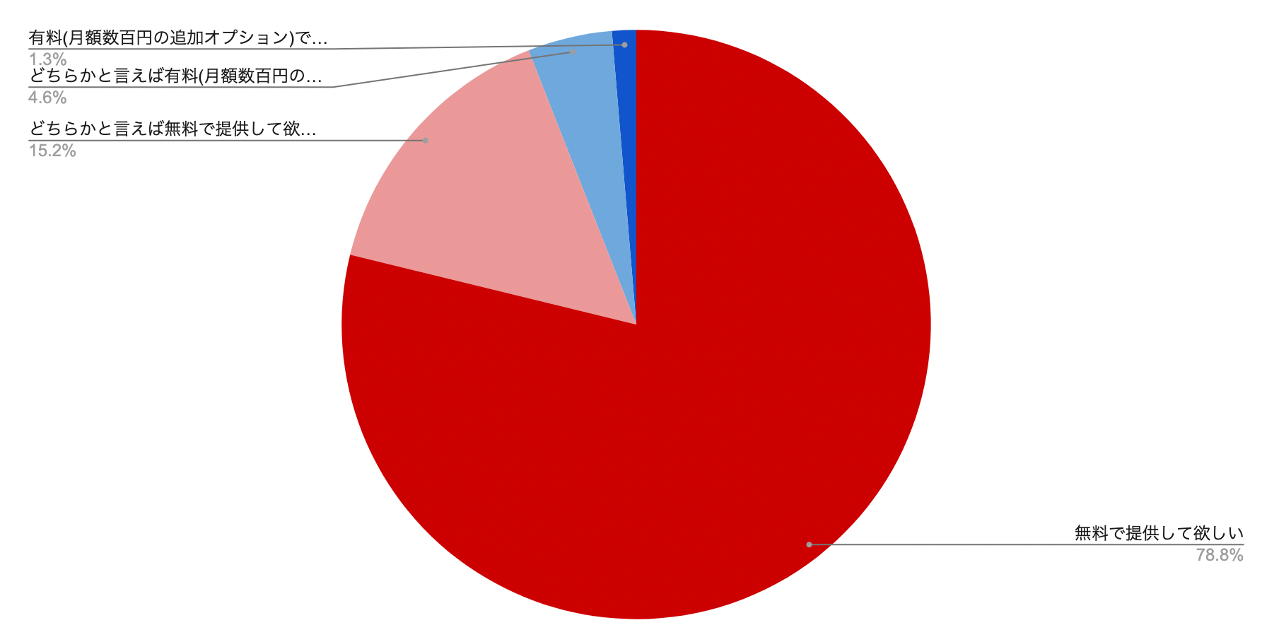 ・有料(月額数百円の追加オプション)でも構わない :約1.3%(2人が回答)