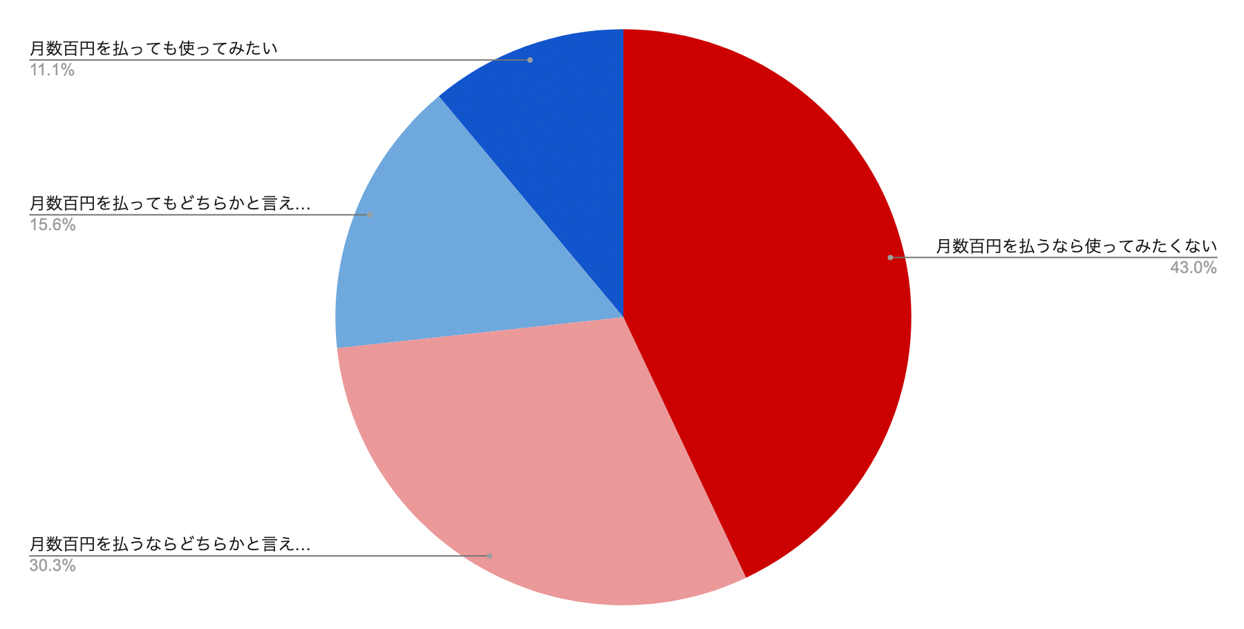・月数百円を払うなら使ってみたくない:約43.0%(132人が回答)