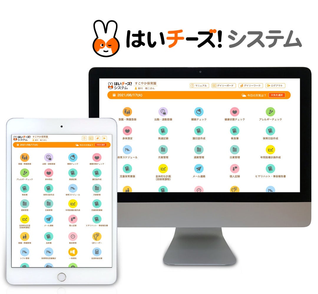 はいチーズ!システム(https://hoiku-ict.com)は、保育者の業務負荷の削減を実現し、保育者の働き方改革の推進を目的とし、30以上の機能を無償で提供する業界初の園業務支援システム※です。保育業界では記録作業のほとんどが「手書き」で行われるアナログなコミュニケーションが多く、属人的ゆえに発生するミスを防止し、保育業務の効率化、残業削減や保育士の離職防止に寄与します。