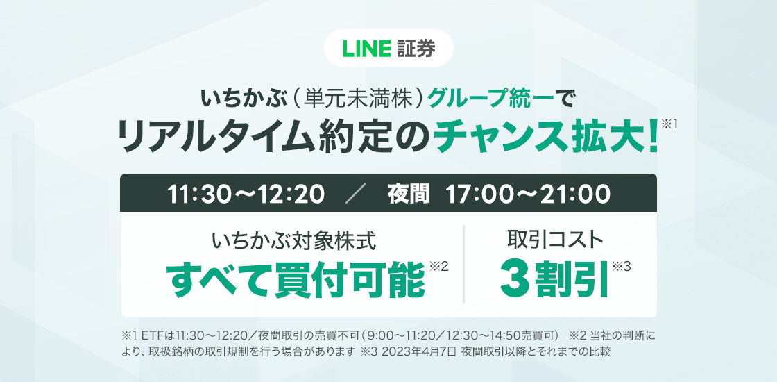 上記の手数料等およびリスク・ご注意事項についての詳細はこちら(https://terms2.line.me/LINESecurities_risk?lang=ja)をよくお読みください。