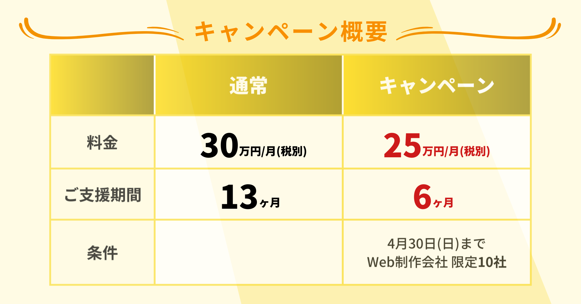 そしてこの度、当社と同じWeb制作会社を対象として期間限定のキャンペーンを開始いたしました。
