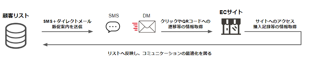 一般的に、紙媒体はその実在性や視認性により、デジタル媒体と比較し開封率が高く、メッセージの訴求力や広告効果が高いと言われる一方で、広告施策の効果測定や催事への来場履歴、購入履歴等の行動履歴が取得しづらいという面があります。他方、SMSや+メッセージ(※)のデジタル媒体はこれら広告施策の効果測定や催事への来場履歴、購入履歴等の行動履歴が取得しやすい特徴を有しています。