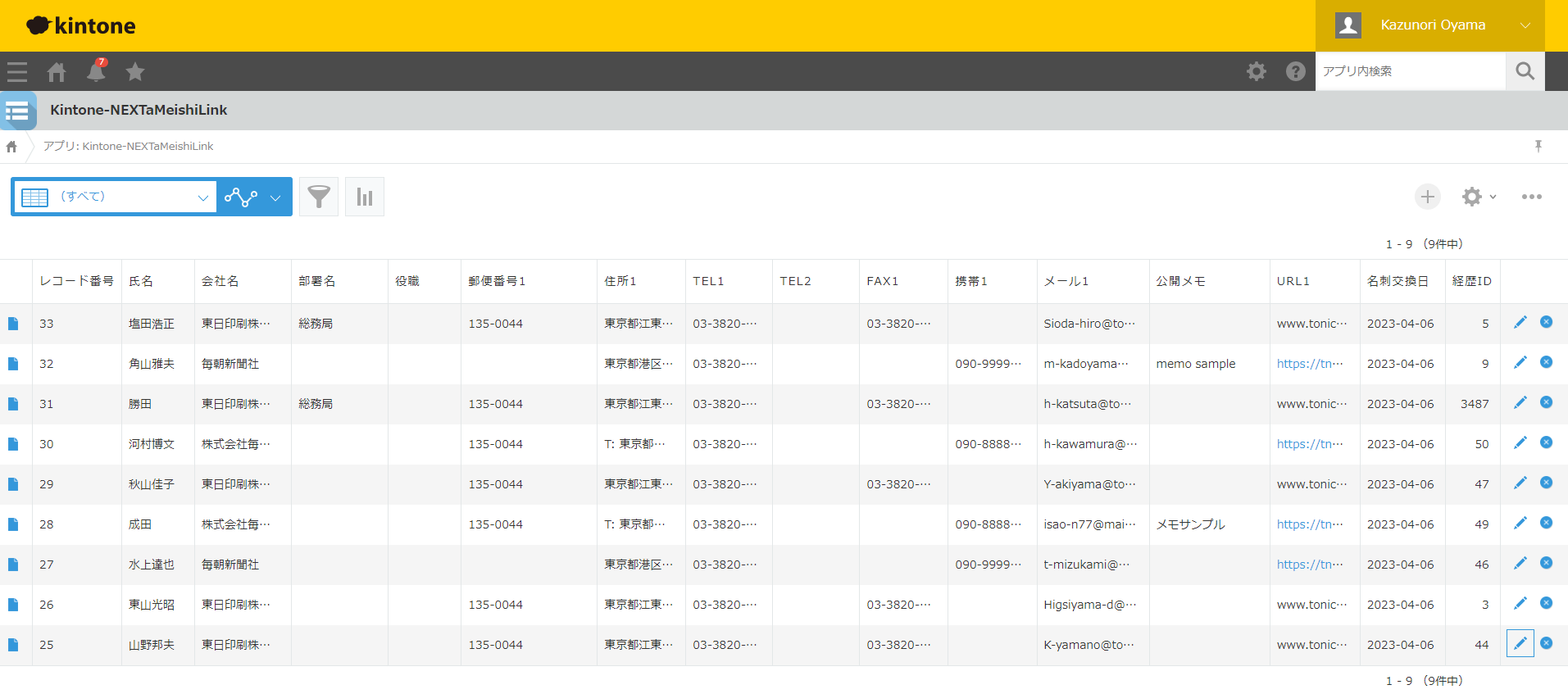 今回、ネクスタメイシがkintone と連携したことにより、名刺やメール署名などを利用して、会社、氏名、部署名、肩書きなどを簡単にkintone へ登録できるようになり、顧客や取引先データの更新作業が大きく削減されます。また、同一人物の名刺が複数登録されていても、最新の名刺情報だけがkintone に反映されるため、自動的にデータは最新に更新されます。