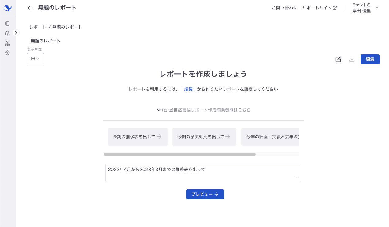 - 「自然言語レポート作成補助機能(α版)」により、専門用語がわからなくても経営情報へのアクセスが可能に