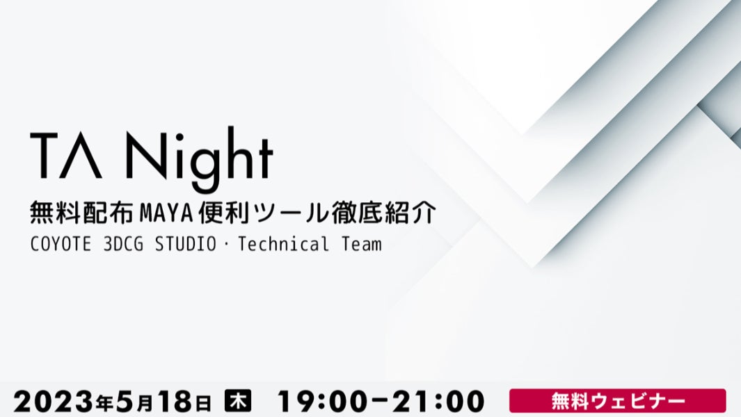5/18(木)こんなの欲しかった!TAの意見をもとに作ったMayaの便利な無料ツールを徹底紹介!【TA Night オンライン開催】