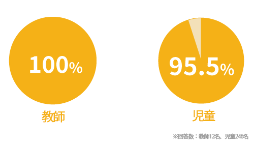 全校生徒の机に取り付けて頂いた千葉県印西市立原山小学校にご協力を頂き、アンケートを実施しました。その結果先生の100%、児童の95.5%が「天板拡張くんを引き続き使い続けたい」という結果になりました。