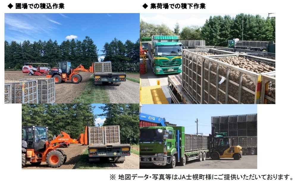 合わせて、集荷待ちの減少による馬鈴薯の劣化抑制、トラックの移動距離削減による化石燃料の削減、作業の効率化による労働力不足問題への対応が期待できます。