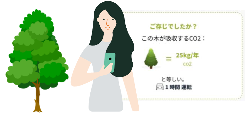 またゲームやヘルスチェックなどで貯めたOmneのポイントを使って、アジアの国々への植樹の活動に参加できます。里親になった木の成長にあわせて、その木が削減したCO2削減量の確認もでき、習慣づくりをしながらCO2削減に貢献できるユニークな仕組みも提供します。