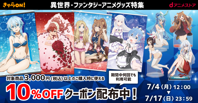 ▼【きゃらON!限定】異世界・ファンタジーアニメグッズ対象10%OFFクーポン