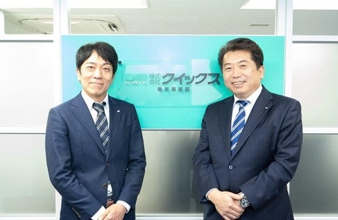 写真右から、株式会社クイックス 代表取締役社長 岡本 泰様、第二営業部 副部長 山下 二郎様