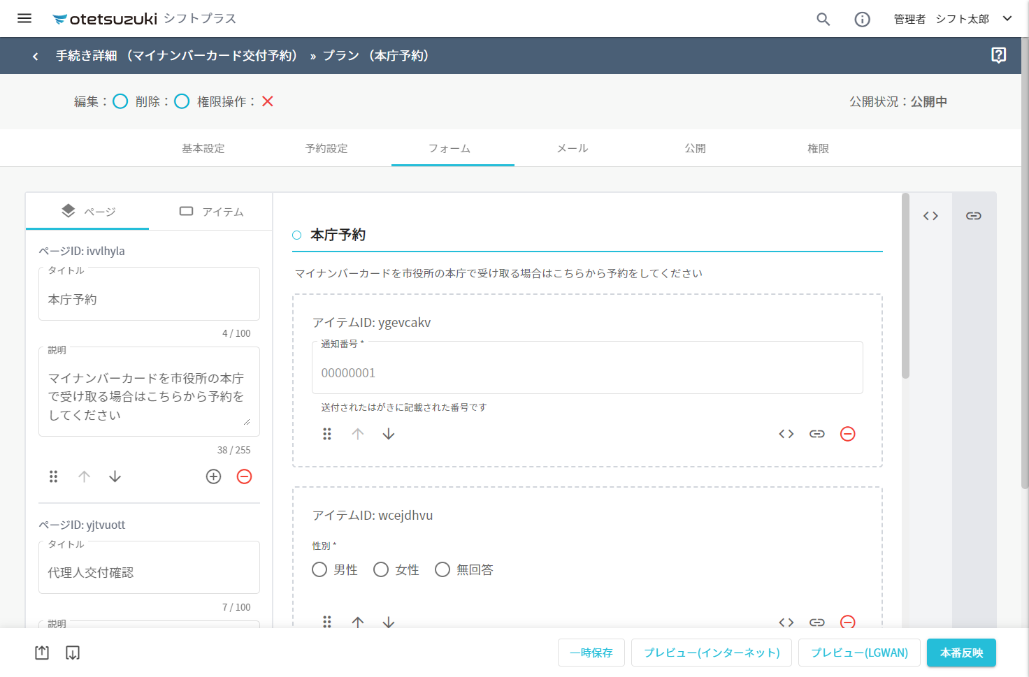 予約・申請などを受け付けるWEBページ(フォーム)を職員が作成・公開することで、従来窓口、電話、郵送等で行っていた各種行政手続きをオンラインで行えるようにするシステムです。