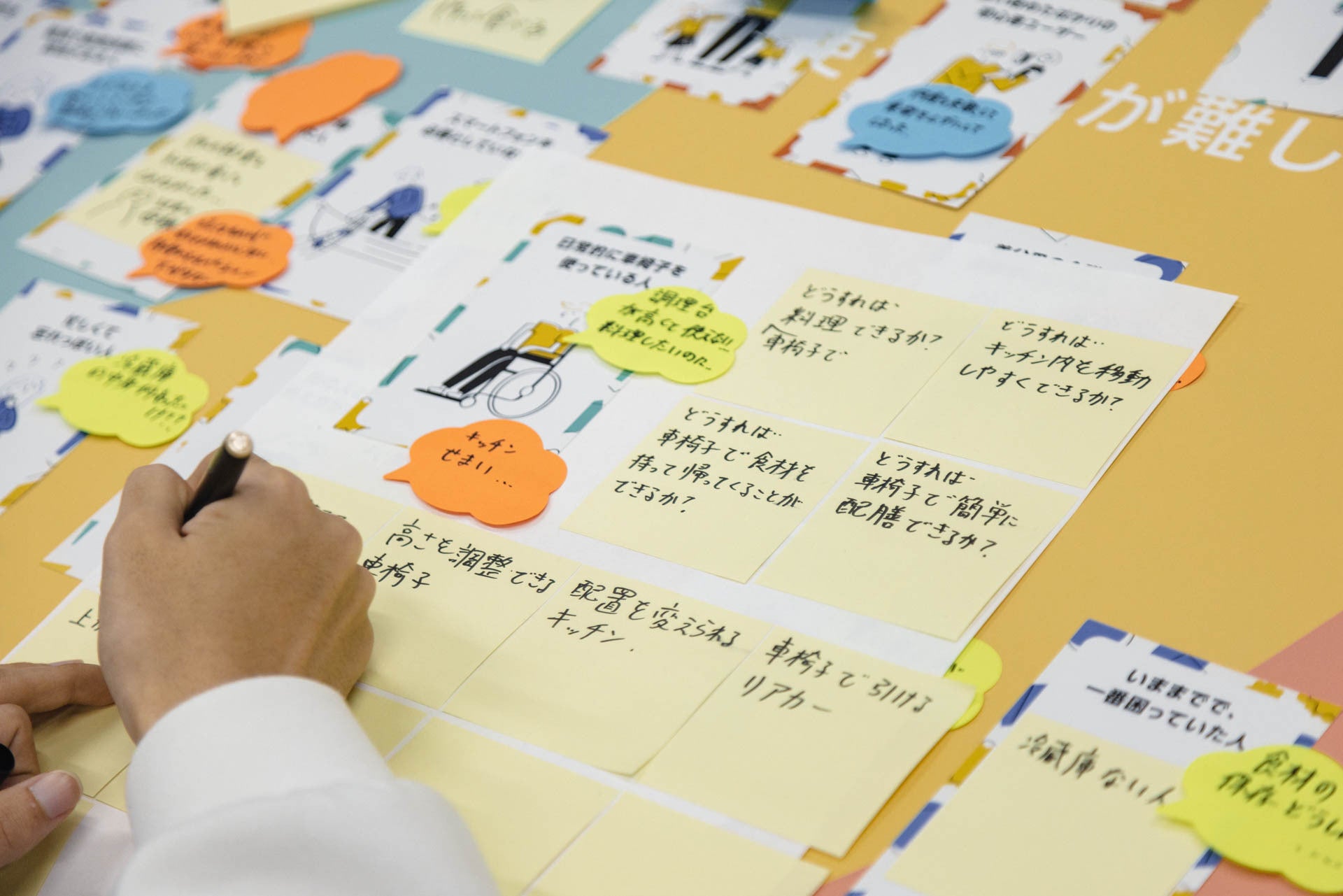 参加者は、インクルーシブデザインの考え方を応用して、社会課題を解決するためのアイデアを考えます。アイデアをリードユーザー(当事者や専門家など)に投げかけてフィードバックを得ることで、アイデアを改善していきます。