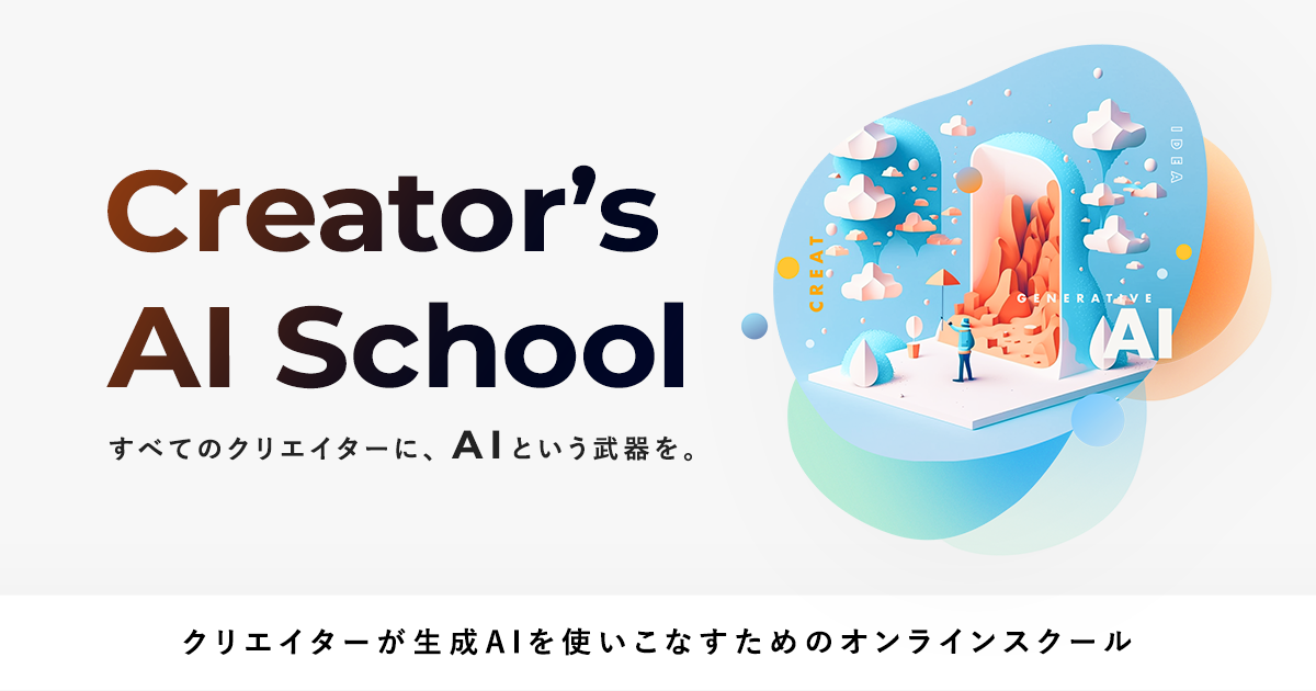 Creator’s AI Schoolは、クリエイターが仕事をよりクリエイティブに、より効率化できるように、生成AIツール活用を学ぶ日本初のリスキリングオンラインスクールです。