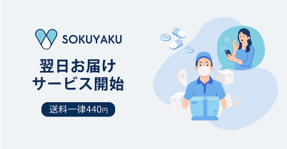 今後、翌日までに処方薬が必要な患者様は「SOKUYAKU」アプリ上で「翌日お届け」を選択できるようになります。配送料は、全国一律440円(税込)でご利用いただけます。※