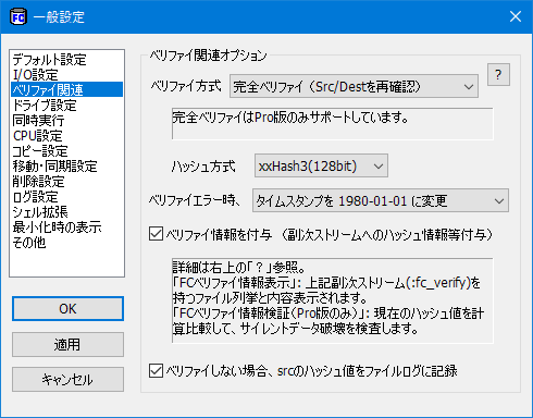 1.完全ベリファイ(書込先だけでなく読込元も再読み込みしての比較検証。Pro版のみ)