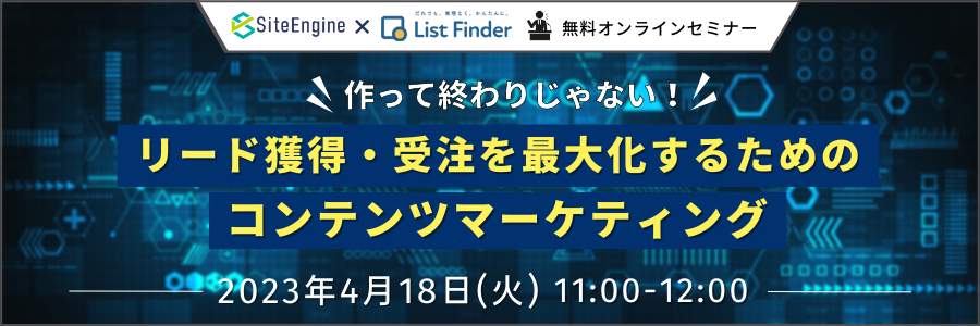 (本社:東京都渋谷区、代表取締役社長:遠藤俊一、以下「Innovation X Solutions」)は、デジタルマーケティング支援を行っているサイトエンジン株式会社(東京オフィス:東京都千代田区、代表取締役:毛塚智彦氏、以下「サイトエンジン社」)と共催で、「作って終わりじゃない!リード獲得・受注を最大化するためのコンテンツマーケティング」をテーマとしたセミナーを2023年4月18日(火)に開催いたします。