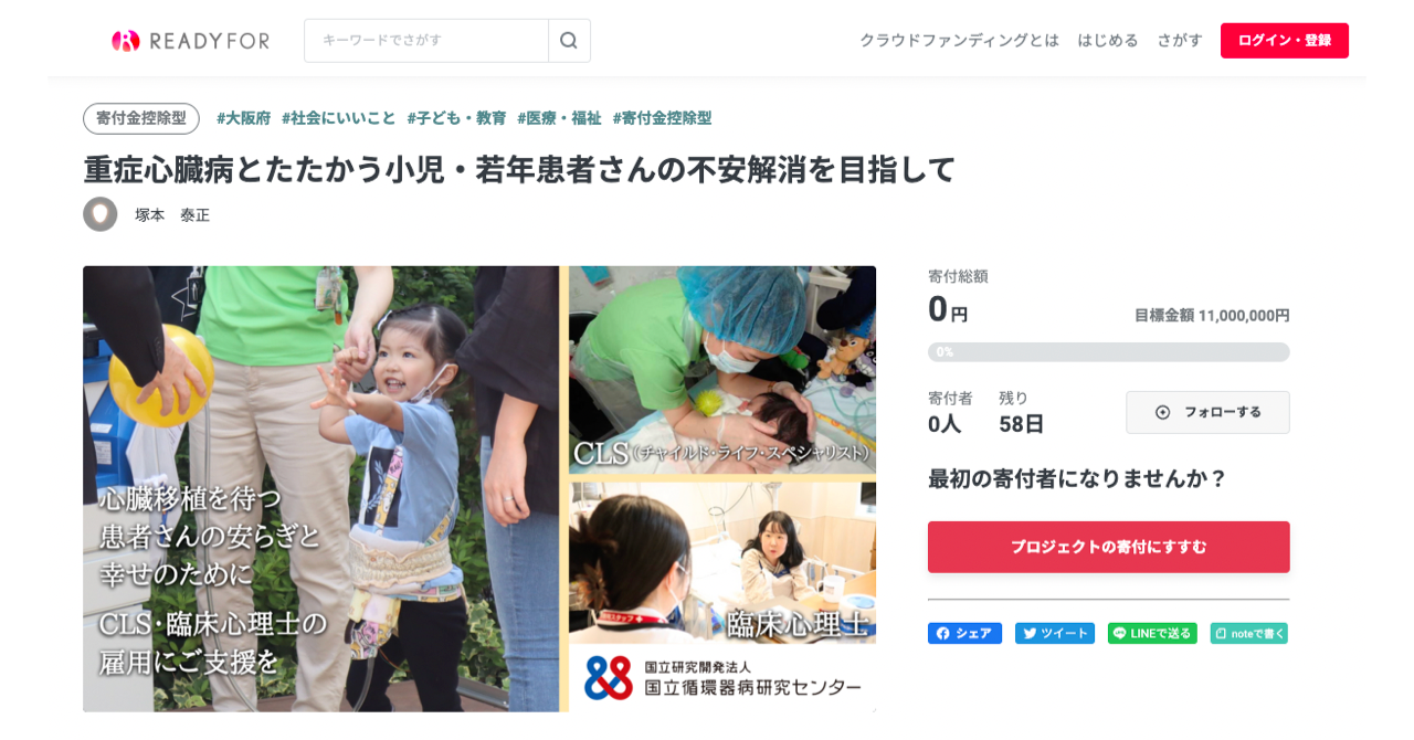 国循職員が、臨床・研究・教育等を目的とした様々な活動に対して、クラウドファンディングサービス「READYFOR」を活用し多くの方々からのご支援を募ります。