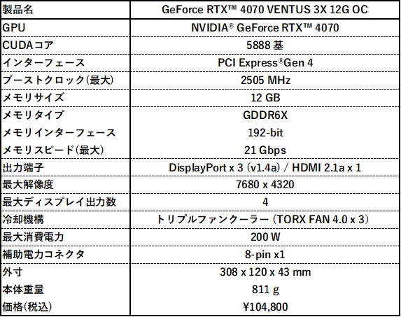 https://jp.msi.com/Graphics-Card/GeForce-RTX-4070-VENTUS-3X-12G-OC